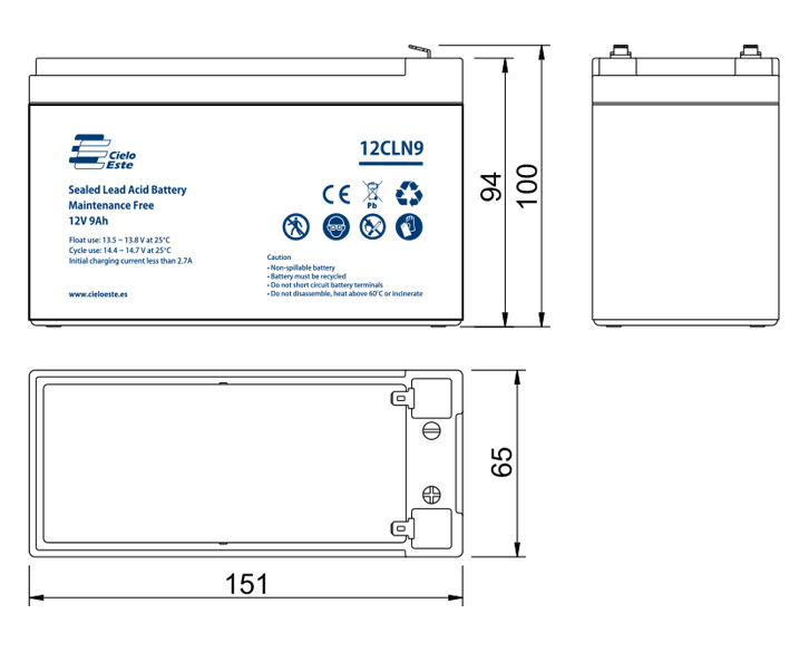 | Rated Capacity (20 hour rate) | 9Ah | |